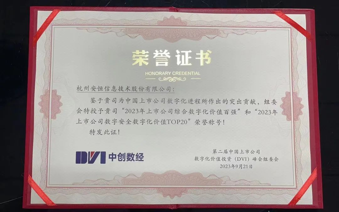 安恒信息獲上市公司數(shù)字化價值兩項榮譽