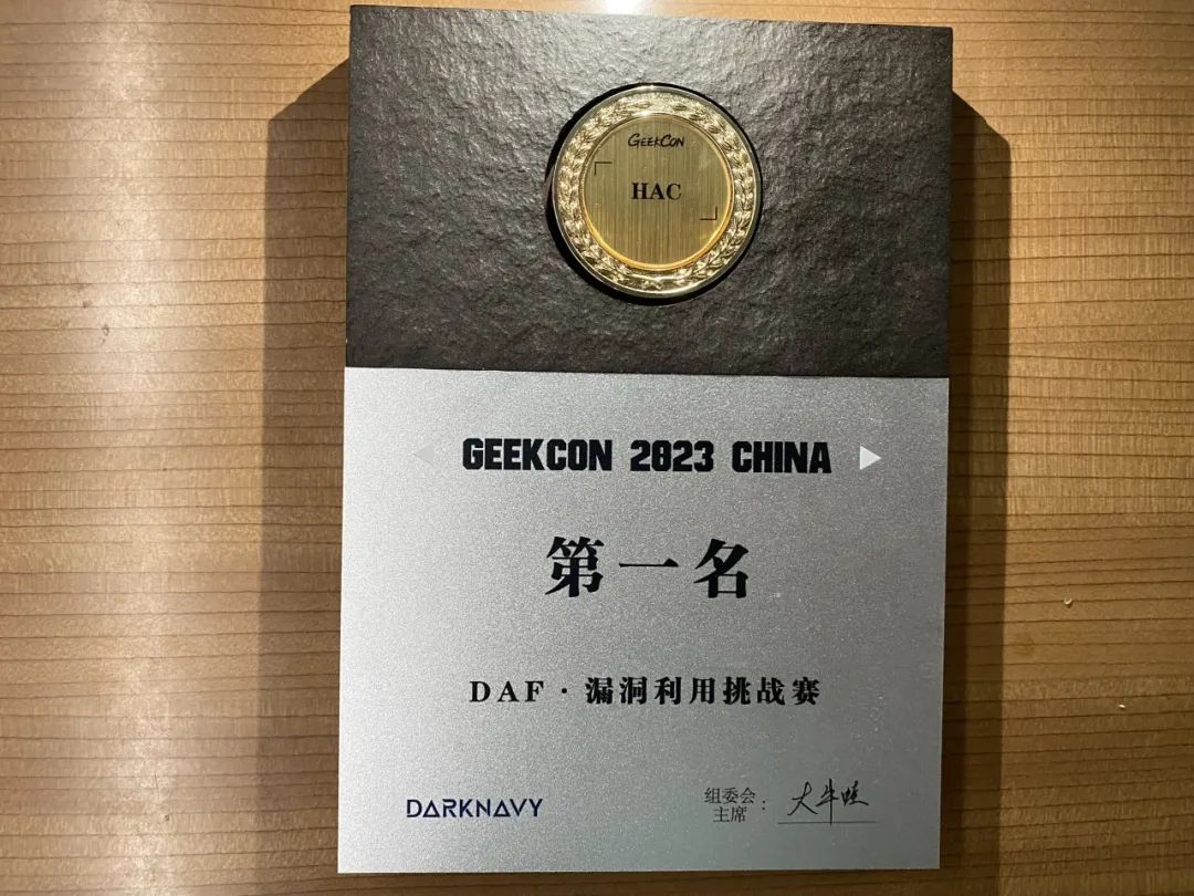 大會現場jq0904和Mason穩(wěn)定發(fā)揮,用時不到3秒即攻破系統(tǒng),這也是國內首次在公開場合下完成該大型操作系統(tǒng)供應商虛擬機破解演示,衛(wèi)兵實驗室憑借其優(yōu)異的表現,勇奪漏洞與利用DAF挑戰(zhàn)賽第一名。