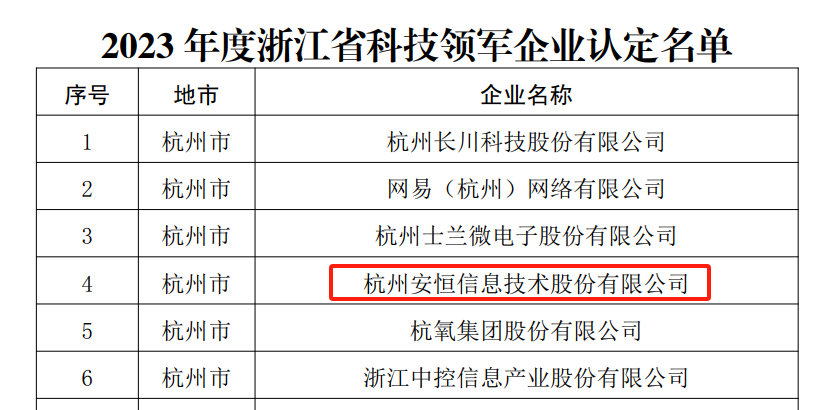 安恒信息榮獲2023年度“浙江省科技領(lǐng)軍企業(yè)”稱號(hào)