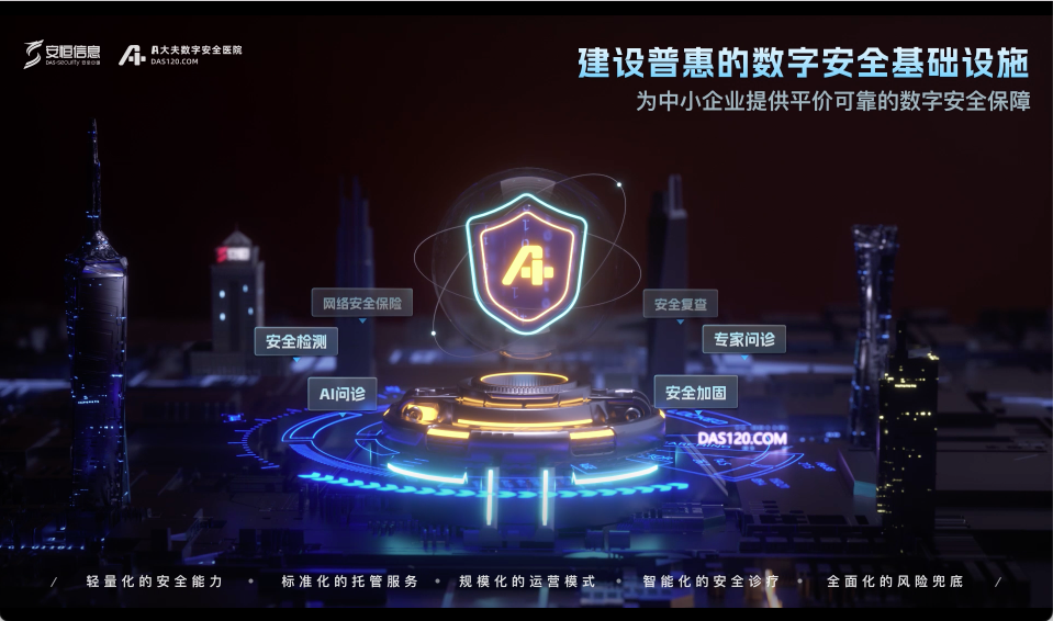 安恒信息云產品線常務副總裁葉章龍介紹到,“A大夫數字安全醫(yī)院”是安恒信息針對中小企業(yè)研發(fā)和建設的普惠數字安全基礎設施。“A大夫”依托安恒AI大模型和SaaS化的安全能力,同時配合數字安全保險,降低企業(yè)數字安全建設成本,兜底企業(yè)數字安全風險,以“醫(yī)療+醫(yī)保”的方式向客戶提供全生命周期的數字安全保障。