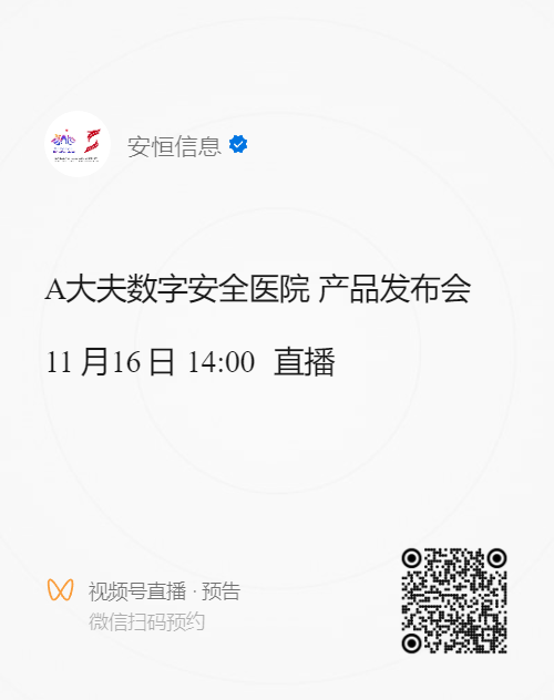 11月8日,由中國網絡空間安全協(xié)會主持的新產品新技術在烏鎮(zhèn)互聯(lián)網國際會展中心成功舉辦。會上,安恒信息正式發(fā)布“A大夫數字安全醫(yī)院”全新產品。