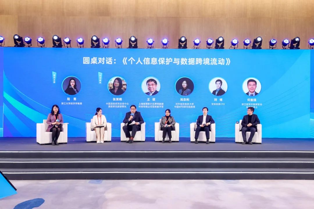 11月24日,在第二屆全球數(shù)字貿易博覽會舉辦期間,由全球數(shù)字貿易博覽會組委會辦公室主辦,杭州市人民政府、浙江省商務廳承辦的高標準經貿規(guī)則視野下的數(shù)字自貿區(qū)貿易便利化研討會成功召開,安恒信息CTO劉博受邀出席個人信息保護與數(shù)據(jù)跨境流動圓桌對話。