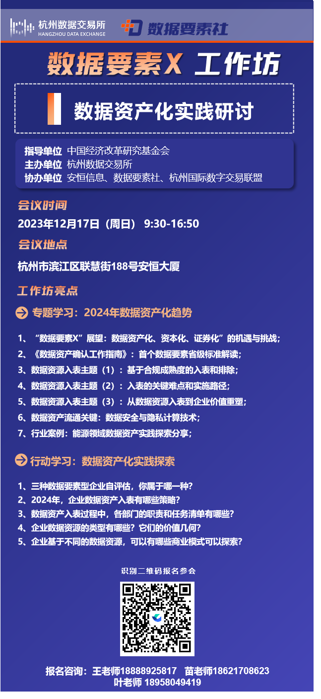 "數(shù)據(jù)要素X"工作坊?杭州數(shù)據(jù)交易所專場(12月17日)