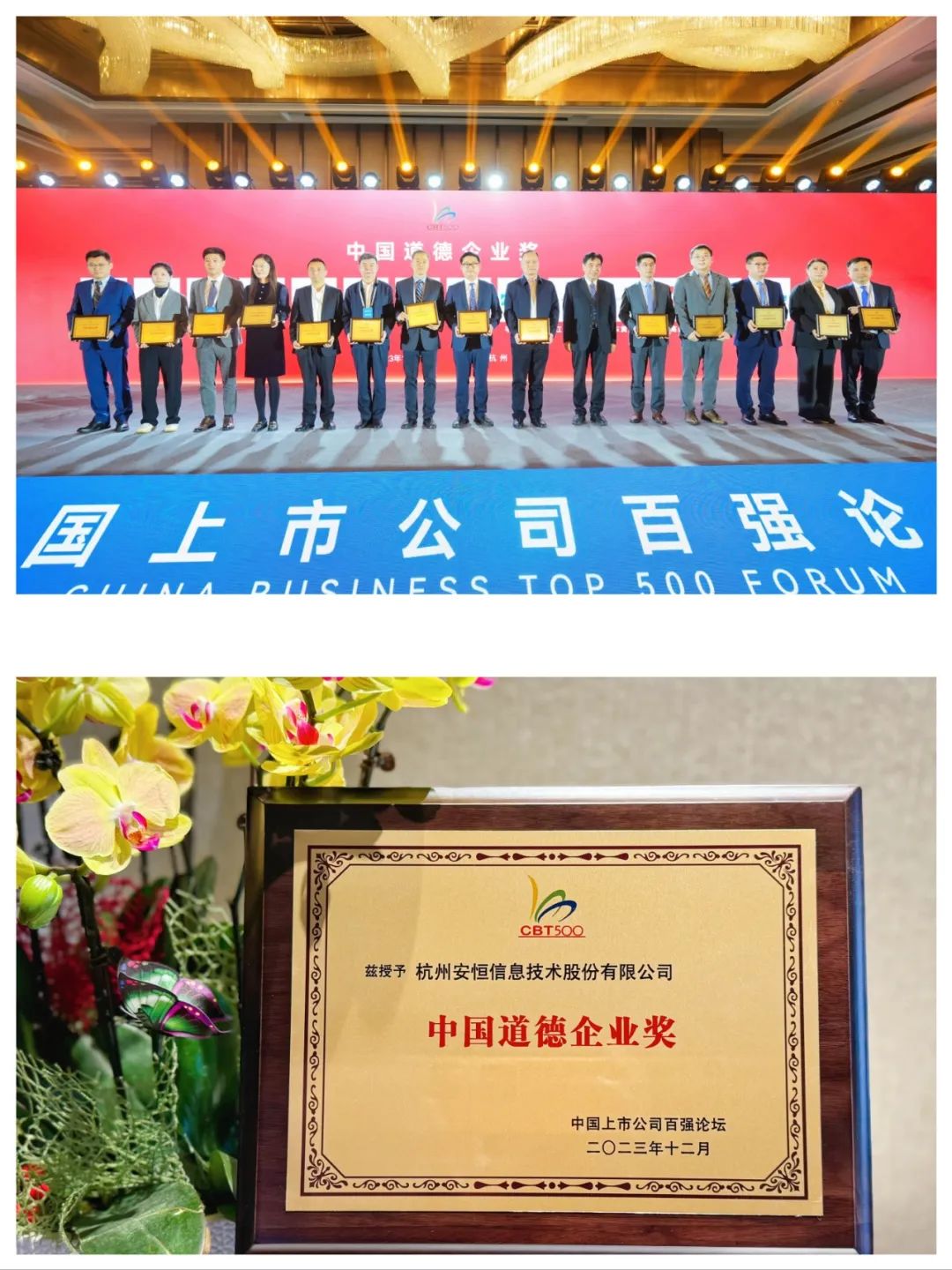 會(huì)上,安恒信息董事長(zhǎng)范淵榮獲中國(guó)百?gòu)?qiáng)杰出企業(yè)家獎(jiǎng),安恒信息榮獲中國(guó)道德企業(yè)獎(jiǎng)。