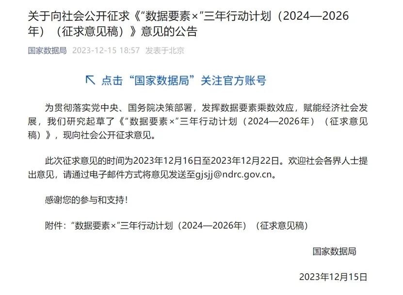 解讀丨國家數(shù)據(jù)局《“數(shù)據(jù)要素×”三年行動計劃(2024-2026)(征求意見稿)》