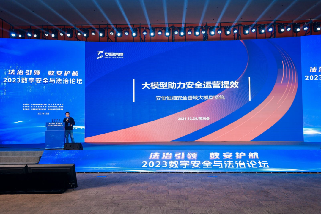 12月28日,“2023數(shù)字安全與法治論壇”在浙江杭州舉辦。中國網(wǎng)絡(luò)空間安全協(xié)會理事長趙澤良出席論壇并致辭,中國科學院院士管曉宏,中央網(wǎng)信辦法治局、杭州市委宣傳部、杭州市余杭區(qū)有關(guān)負責同志等出席論壇并作主題演講。安恒信息作為中國網(wǎng)絡(luò)空間安全協(xié)會的理事單位,積極參與本次論壇,并由人工智能專家發(fā)表了題為《大模型助力安全運營提效》的主題演講。