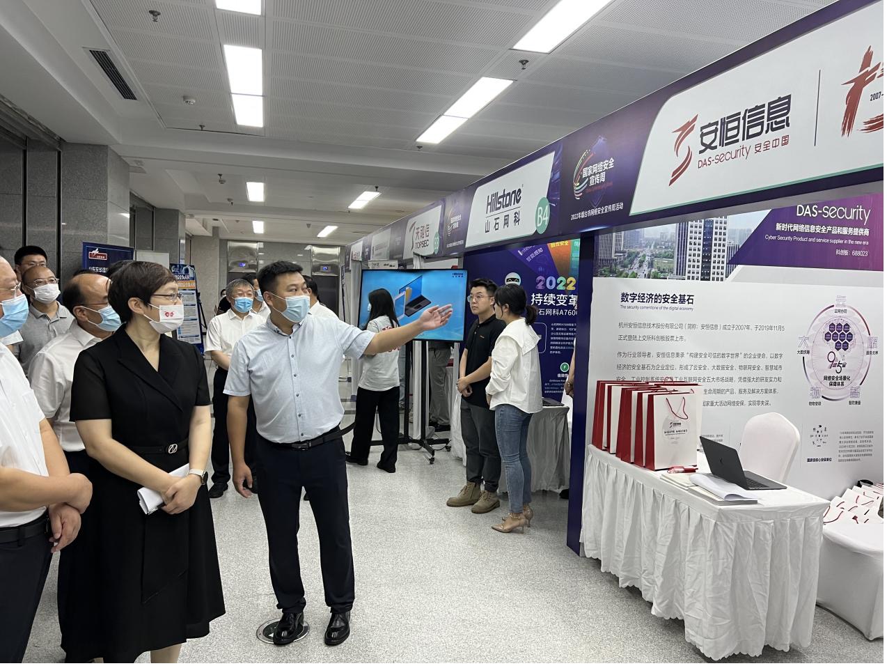 ? ? ? ?2022年9月5日煙臺(tái)市網(wǎng)絡(luò)安全宣傳周在高新區(qū)開幕。期間,煙臺(tái)市陸續(xù)舉辦校園日、電信日、法制日、青少年日、個(gè)人信息保護(hù)日等系列主題日活動(dòng),同時(shí)開展網(wǎng)絡(luò)安全進(jìn)社區(qū)、進(jìn)企業(yè)、進(jìn)校園等宣傳普及活動(dòng)。安恒信息受邀出席本次網(wǎng)絡(luò)安全主題展覽,向與會(huì)領(lǐng)導(dǎo)及大眾群體答疑解惑,普及網(wǎng)絡(luò)安全意識(shí)。