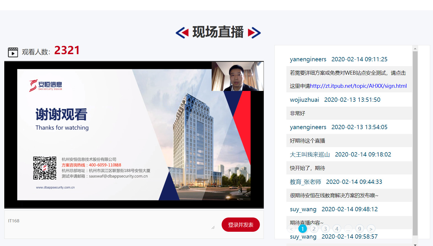 疫情當(dāng)前,安全在線。為了保障在線教育系統(tǒng)安全,今日,安恒信息正式發(fā)布在線教育系統(tǒng)安全整體解決方案。與以往不同的是,這次發(fā)布會(huì)全部流程都是在線上進(jìn)行,精彩的“直播+互動(dòng)+答疑”形式也吸引了超過2000名觀眾參與。