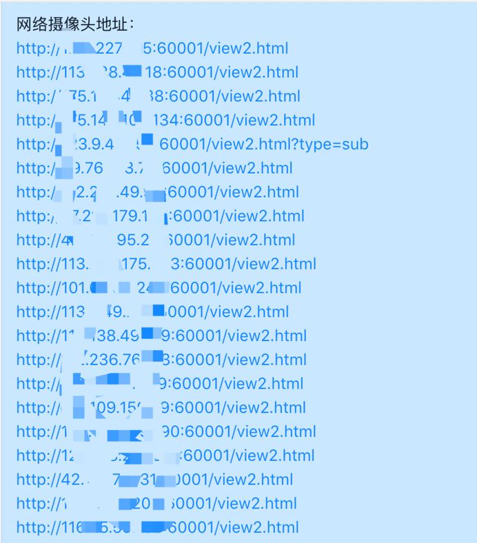黑客公開的部分網(wǎng)絡(luò)攝像頭地址: