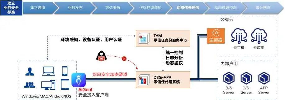 針對遠程業(yè)務(wù)訪問及數(shù)據(jù)開放共享場景下數(shù)據(jù)安全痛點,安恒信息打造了一套秉持零信任安全理念的AiTrust安全體系架構(gòu),打造可信的數(shù)字身份體系,為用戶的應(yīng)用發(fā)布和數(shù)據(jù)開放共享提供持續(xù)化、動態(tài)化、自動化、精細化的訪問控制及多項數(shù)據(jù)安全能力。