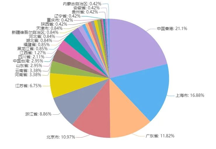 以中國(guó)的省市分布來(lái)看,IP惡意情報(bào)分布排名前5的分別為中國(guó)香港、上海、廣東、北京、浙江,其中中國(guó)香港的惡意IP占比最高,為21.1%。