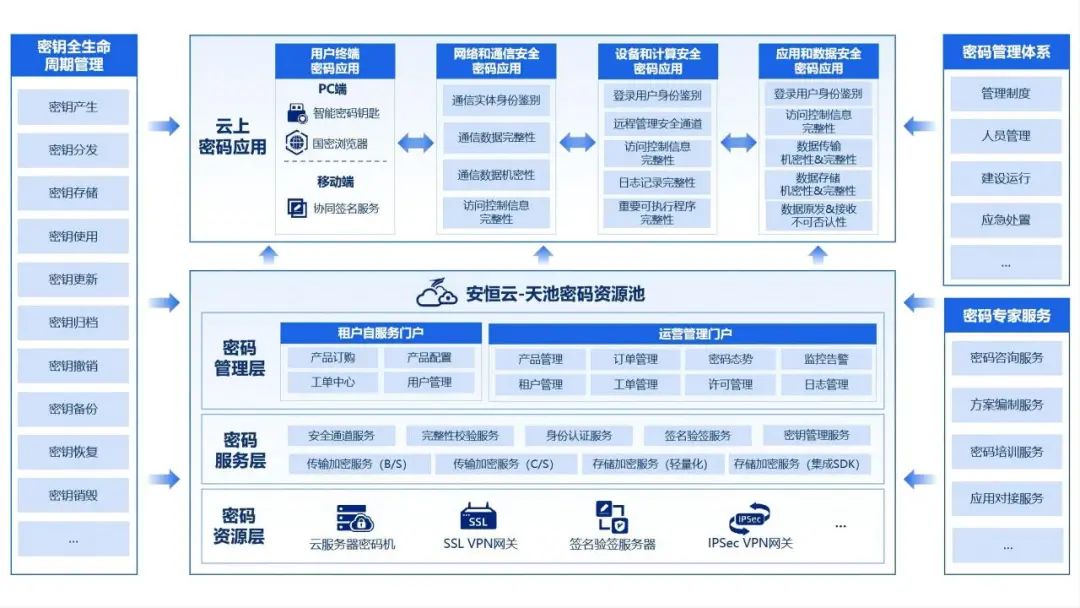 隨著《中華人民共和國(guó)密碼法》、《商用密碼管理?xiàng)l例》等多項(xiàng)法律法規(guī)的出臺(tái)頒布,商用密碼建設(shè)成為業(yè)界普遍關(guān)注的重點(diǎn)。當(dāng)前云計(jì)算已經(jīng)成為各行業(yè)數(shù)字化轉(zhuǎn)型的重要基礎(chǔ)設(shè)施,然而云計(jì)算資源共享、彈性靈活的特點(diǎn)對(duì)以硬件形態(tài)為主的密碼產(chǎn)品帶來(lái)了新的挑戰(zhàn),因此亟需針對(duì)云環(huán)境下的商用密碼解決方案,滿(mǎn)足業(yè)務(wù)上云后的商用密碼應(yīng)用與合規(guī)需求。
