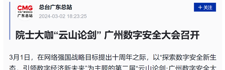 本屆大會(huì)云集中國(guó)工程院、政府、高校、企業(yè)等多方數(shù)字安全領(lǐng)域?qū)<?,共話安全賦能,助力以新提質(zhì),推動(dòng)廣州數(shù)字經(jīng)濟(jì)高質(zhì)量發(fā)展。會(huì)后,各方媒體深度挖掘與會(huì)嘉賓主題演講內(nèi)容,提煉觀點(diǎn)、總結(jié)金句、賦能未來。