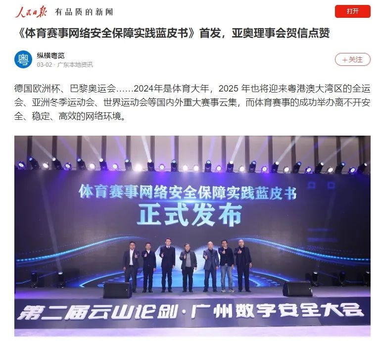 “白云區(qū)12345熱線智慧辦理系統(tǒng)知識(shí)產(chǎn)權(quán)保護(hù)”發(fā)布、“市區(qū)統(tǒng)一安全運(yùn)營(yíng)聯(lián)防聯(lián)控機(jī)制”啟動(dòng)、“廣州市白云區(qū)數(shù)智創(chuàng)新實(shí)驗(yàn)室”揭牌、《體育賽事網(wǎng)絡(luò)安全保障實(shí)踐藍(lán)皮書》首發(fā),廣州市數(shù)字安全建設(shè)最新成果在大會(huì)期間得到了全面展示,并收獲多家媒體持續(xù)關(guān)注并跟蹤報(bào)道。