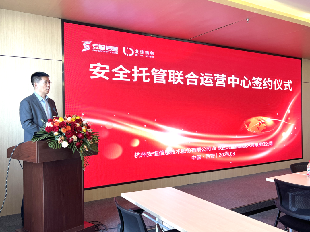 3月11日,安恒信息與陜西北佳信息技術(shù)有限責(zé)任公司(以下簡(jiǎn)稱“北佳信息”)正式簽訂合作協(xié)議書,雙方將聚焦安全托管運(yùn)營服務(wù)領(lǐng)域展開合作,建設(shè)聯(lián)合運(yùn)營中心。