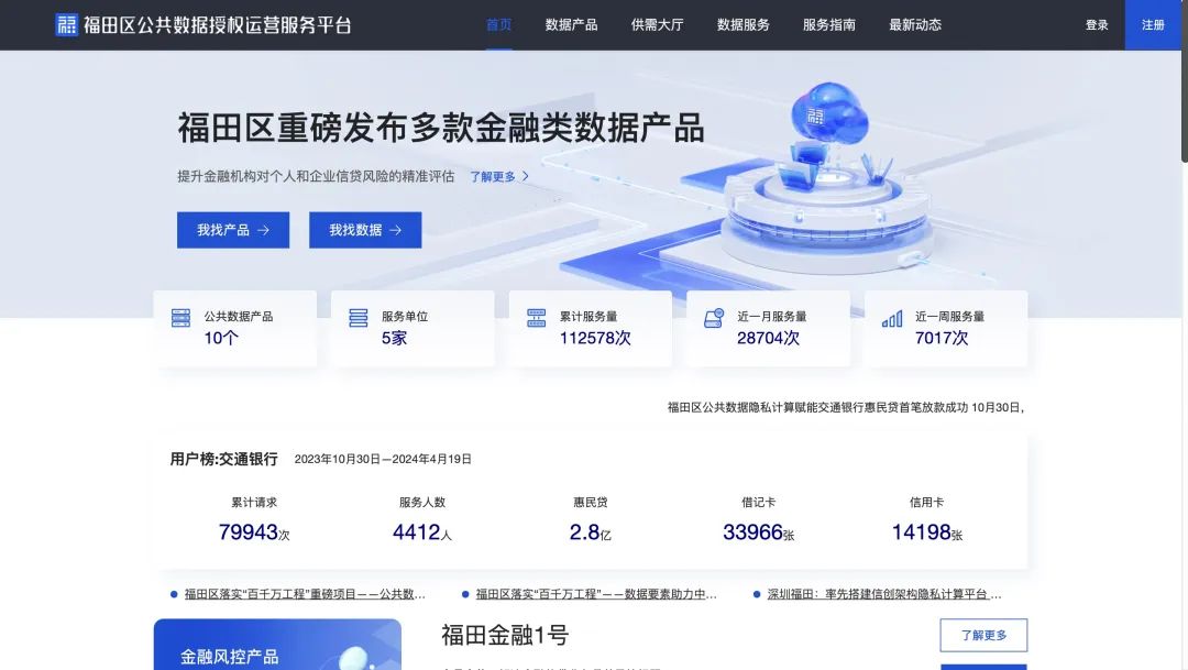 在模式上,上線了深圳首個(gè)公共數(shù)據(jù)授權(quán)運(yùn)營(yíng)平臺(tái),公開了可開放的公共數(shù)據(jù)資源清單,面向社會(huì)收集數(shù)據(jù)實(shí)際使用需求,與深圳數(shù)據(jù)交易所聯(lián)合發(fā)布“福田區(qū)公共數(shù)據(jù)授權(quán)運(yùn)營(yíng)專區(qū)”,保證了公共數(shù)據(jù)用得好。其中,福田金融1號(hào)數(shù)據(jù)產(chǎn)品上線6個(gè)月,幫助交通銀行新增4826名原來(lái)無(wú)法獲批貸款或額度較低的個(gè)人或中小微企業(yè)主,獲批貸款3.13億元。