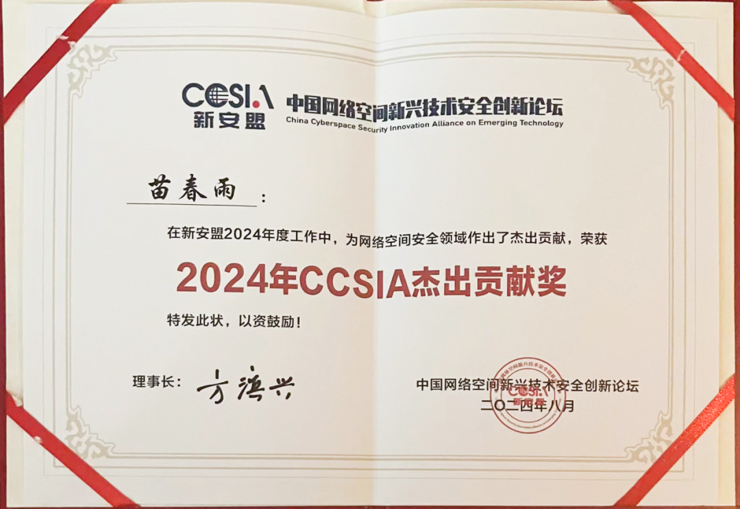 喜報!安恒信息數(shù)字人才創(chuàng)研院院長苗春雨榮獲2024年CCSIA杰出貢獻獎