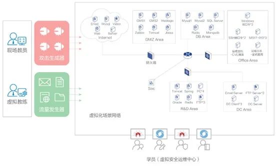 應(yīng)急演練實(shí)驗(yàn)室集成了培訓(xùn)所需的配套資源,包含培訓(xùn)管理系統(tǒng)、培訓(xùn)網(wǎng)絡(luò)環(huán)境、背景流量生成器、攻擊流量生成器、內(nèi)部協(xié)作工具等,可同時(shí)滿足20人的應(yīng)急演練教學(xué)。