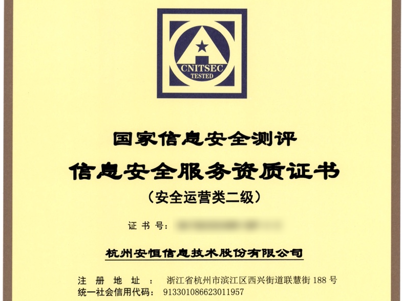 首批!安恒信息獲得國家信息安全服務(wù)安全運營類二級資質(zhì)!