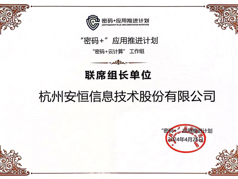 安恒信息當(dāng)選“密碼+云計(jì)算”組聯(lián)席組長單位
