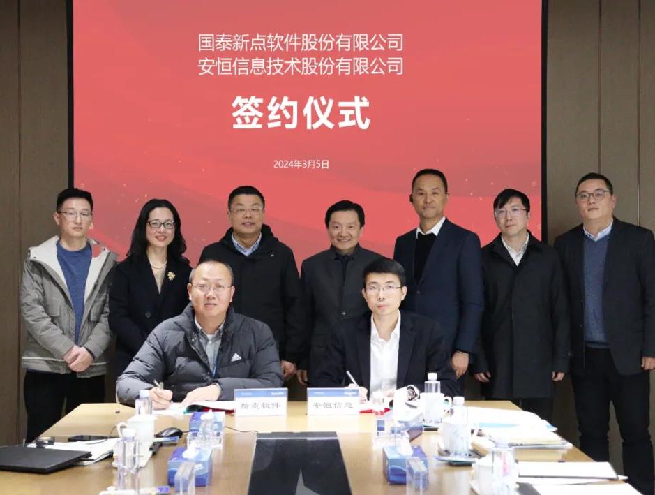 戰(zhàn)略合作簽約3月5日,安恒信息與國(guó)泰新點(diǎn)軟件股份有限公司(以下簡(jiǎn)稱“新點(diǎn)軟件”)正式簽署戰(zhàn)略合作協(xié)議,達(dá)成戰(zhàn)略合作伙伴關(guān)系,共繪合作新篇章。新點(diǎn)軟件董事長(zhǎng)曹立斌、副總裁朱明華、生態(tài)合作部總經(jīng)理殷利明與安恒信息董事長(zhǎng)范淵,首席營(yíng)銷官、高級(jí)副總裁王剛,副總裁王華東,副總裁周俊,江蘇公司總經(jīng)理?xiàng)钜嬷械热顺鱿F(xiàn)場(chǎng)。殷利明和王剛代表雙方正式簽約。在簽約儀式上,曹立斌表示安恒信息與新點(diǎn)軟件的應(yīng)用系統(tǒng)天然存在互