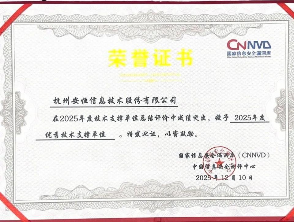 安恒信息獲CNNVD年度表彰