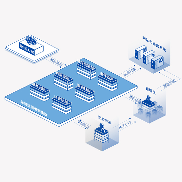 先知云監(jiān)測服務,致力于為監(jiān)管單位提供全生命周期的SaaS化安全監(jiān)管服務。該服務集漏洞檢測、事件監(jiān)測、內容監(jiān)測和可用性監(jiān)測等功能于一體,配套專業(yè)的7×24小時安全運營服務,實時監(jiān)測網(wǎng)站和業(yè)務系統(tǒng)是否存在系統(tǒng)漏洞、安全事件、內容違規(guī)、服務不可用等安全風險,為行業(yè)監(jiān)管用戶、區(qū)域監(jiān)管用戶等提供網(wǎng)站安全態(tài)勢感知、安全風險通報與跟蹤、0Day漏洞預警與重大安全事件預警和分析服務。