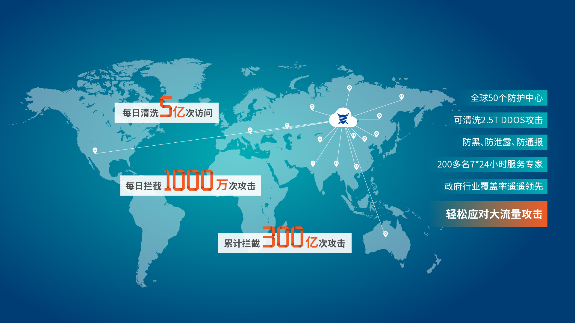 云防護(hù):聯(lián)動2.5T云端抗D、IPv6升級改造及防護(hù)、Web攻擊防護(hù)、聯(lián)動威脅情報(bào)防護(hù)、CC/爬蟲防護(hù)、網(wǎng)站防篡改、一箭關(guān)停
