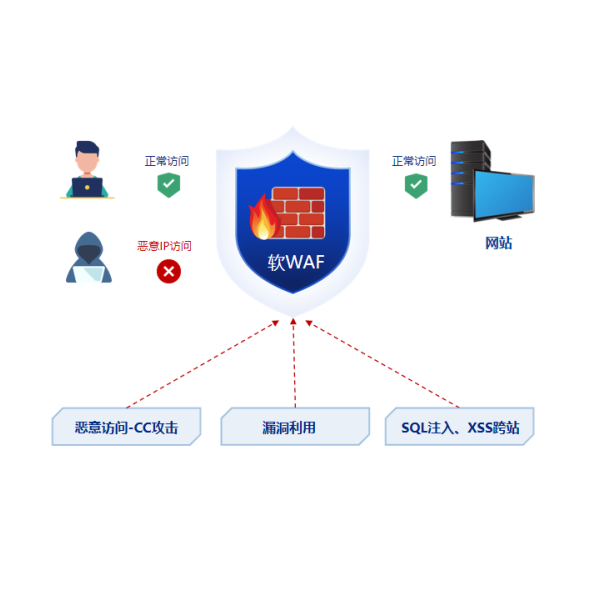 自研軟waf引擎,針對網(wǎng)站常見的 SQL注入攻擊、XSS跨站、Web容器及應(yīng)用漏洞利用(如文件名解析漏洞防護(hù) )進(jìn)行實(shí)時(shí)防護(hù)