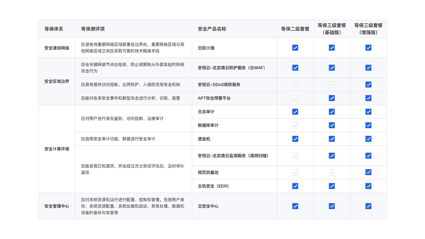 一站式等保產(chǎn)品套餐,滿足用戶等保合規(guī)安全需求
