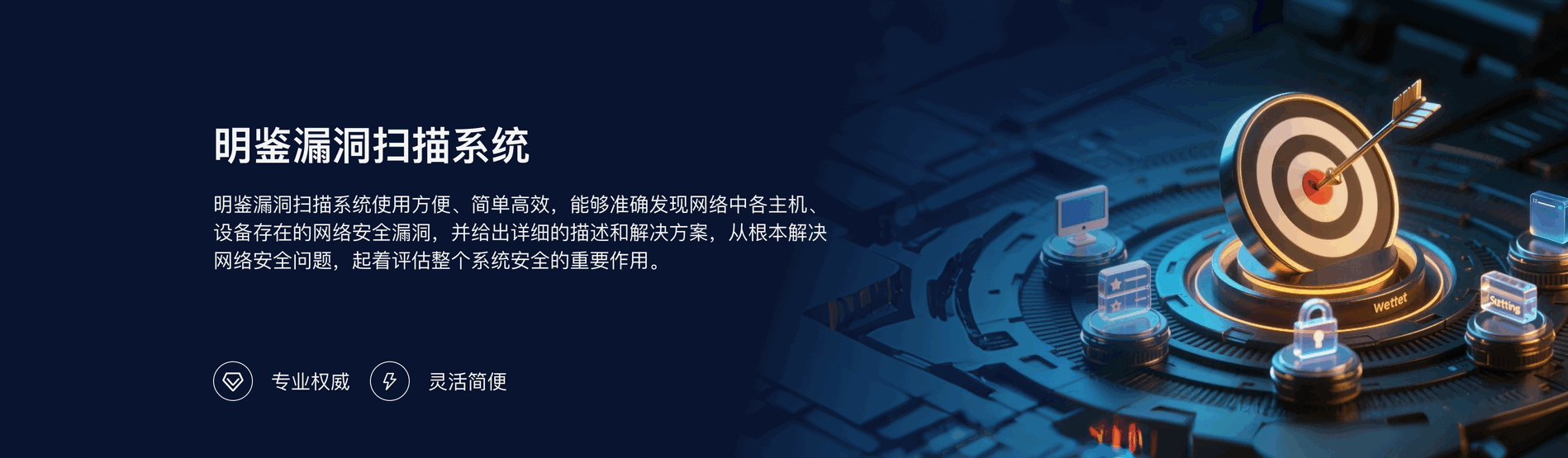 明鑒漏洞掃描系統(tǒng)是一款融合安恒多年信息安全漏洞挖掘、滲透測試技術(shù)研究和漏洞檢查方法的最佳實(shí)踐經(jīng)驗(yàn),集主機(jī)安全掃描、網(wǎng)站安全掃描、數(shù)據(jù)庫安全掃描、弱口令發(fā)現(xiàn)、基線配置核查于一身的產(chǎn)品,能夠精準(zhǔn)評(píng)估多維度資產(chǎn)的安全風(fēng)險(xiǎn),幫助用戶提高網(wǎng)絡(luò)安全防護(hù)性能和抗破壞能力