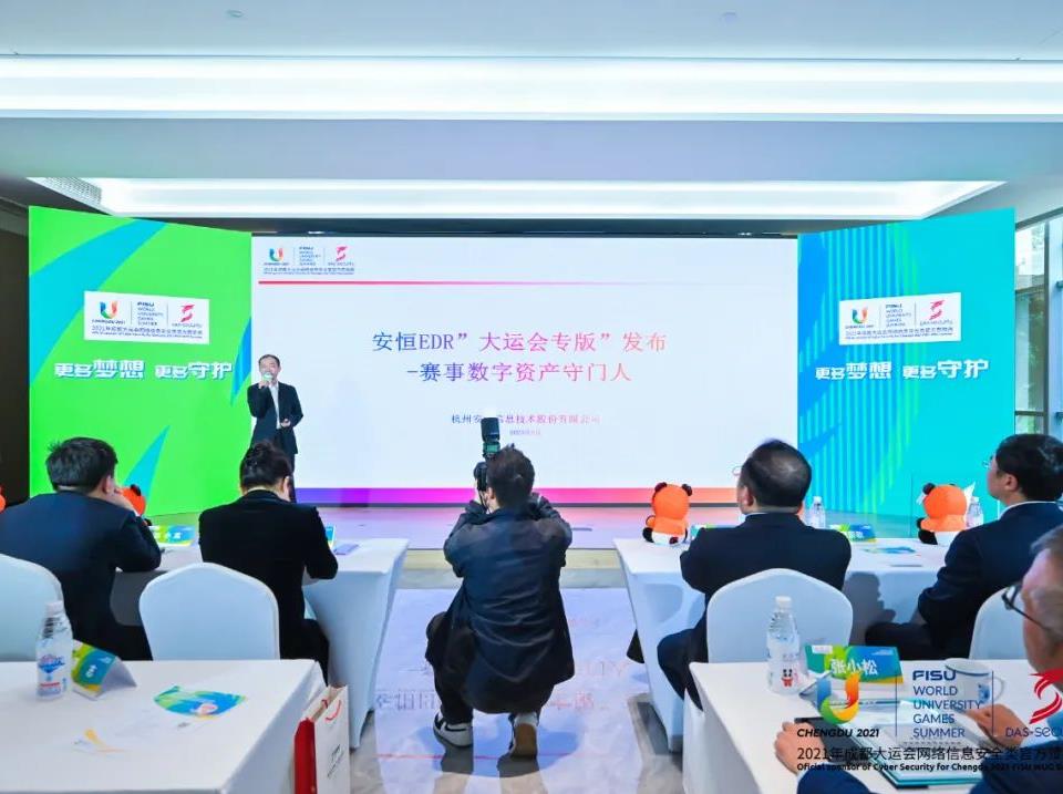 4月7日,成都大運會(網(wǎng)絡(luò)信息安全類)官方贊助商安恒信息升級發(fā)布會暨“西部網(wǎng)絡(luò)安全總部”啟動儀式在成都高新區(qū)安恒大廈舉行。安恒信息成為了從成都大運會的“賽事合伙人”進而成為“城市合伙人”的成功典范,創(chuàng)造了數(shù)個“首個”?,F(xiàn)場,安恒EDR“大運會專版”重磅發(fā)布,安恒信息副總裁劉思宇作專題匯報。對于安恒EDR大運會專版的發(fā)布,劉思宇提出四大關(guān)鍵詞“智能、實戰(zhàn)、簡單、責(zé)任”,體現(xiàn)了安恒終端安全對于大型賽事網(wǎng)絡(luò)安全保障的信念和態(tài)度。