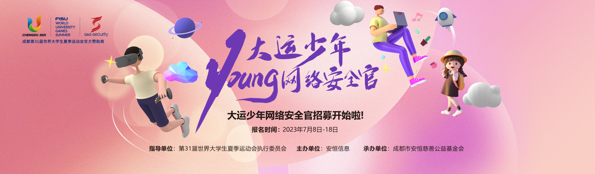 7月28日,第31屆世界大學(xué)生夏季運(yùn)動(dòng)會(huì)將在成都盛大開幕。這是疫情結(jié)束以來,國(guó)內(nèi)首場(chǎng)開放性大型國(guó)際體育綜合賽事,也是全世界青少年交流學(xué)習(xí),展現(xiàn)風(fēng)采的平臺(tái)面。為全面貫徹黨的二十大精神,普及青少年網(wǎng)絡(luò)安全意識(shí)培養(yǎng),助力網(wǎng)絡(luò)安全人才培養(yǎng),構(gòu)筑數(shù)字經(jīng)濟(jì)網(wǎng)絡(luò)網(wǎng)絡(luò)安全屏障,推動(dòng)網(wǎng)絡(luò)強(qiáng)國(guó)建設(shè)。成都大運(yùn)會(huì)網(wǎng)絡(luò)安全官方贊助商安恒信息作為一家極具社會(huì)責(zé)任感的企業(yè),成立“成都市安恒公益慈善基金會(huì)”,積極響應(yīng)成都大運(yùn)會(huì)“綠色、智慧、活力、共享”的辦賽理念貢獻(xiàn)企業(yè)的力量,現(xiàn)面向全國(guó)各年齡段在校學(xué)生,發(fā)起的“大運(yùn)少年網(wǎng)絡(luò)安全官”公益行動(dòng),活動(dòng)積極踐行“責(zé)任至上”的核心價(jià)值觀,攜手成都大運(yùn),甄選優(yōu)秀網(wǎng)絡(luò)安全人才,助力實(shí)現(xiàn)大運(yùn)夢(mèng)想,傳遞大運(yùn)精神,傳播公益文化。