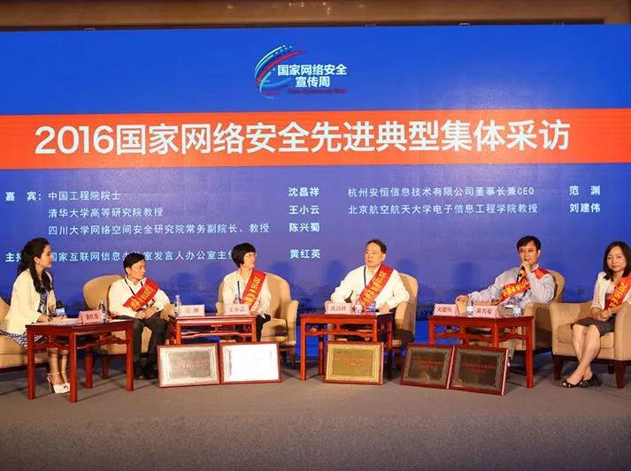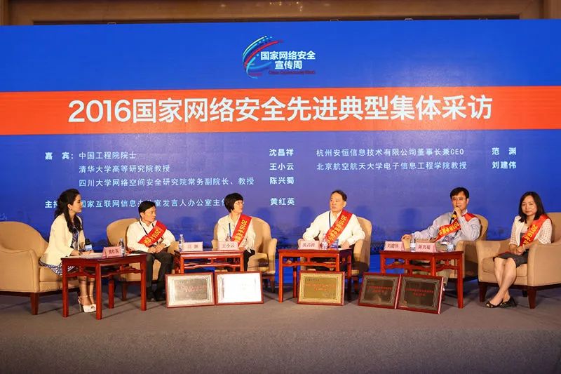 在中央網(wǎng)信辦和教育部指導(dǎo)下,中國互聯(lián)網(wǎng)發(fā)展基金會網(wǎng)絡(luò)安全專項基金組織了網(wǎng)絡(luò)安全優(yōu)秀人才、優(yōu)秀教師等評選活動。經(jīng)過中央部門和院士推薦、專家評審、公示,評選出網(wǎng)絡(luò)安全杰出人才1名、優(yōu)秀人才10名、優(yōu)秀教師8名。據(jù)《國家網(wǎng)絡(luò)安全宣傳周活動方案》,開幕式上表彰了網(wǎng)絡(luò)安全先進(jìn)典型。杭州安恒信息技術(shù)有限公司董事長范淵榮獲“2016年網(wǎng)絡(luò)安全優(yōu)秀人才獎”,代表“網(wǎng)絡(luò)安全優(yōu)秀人才”接受媒體集體采訪。