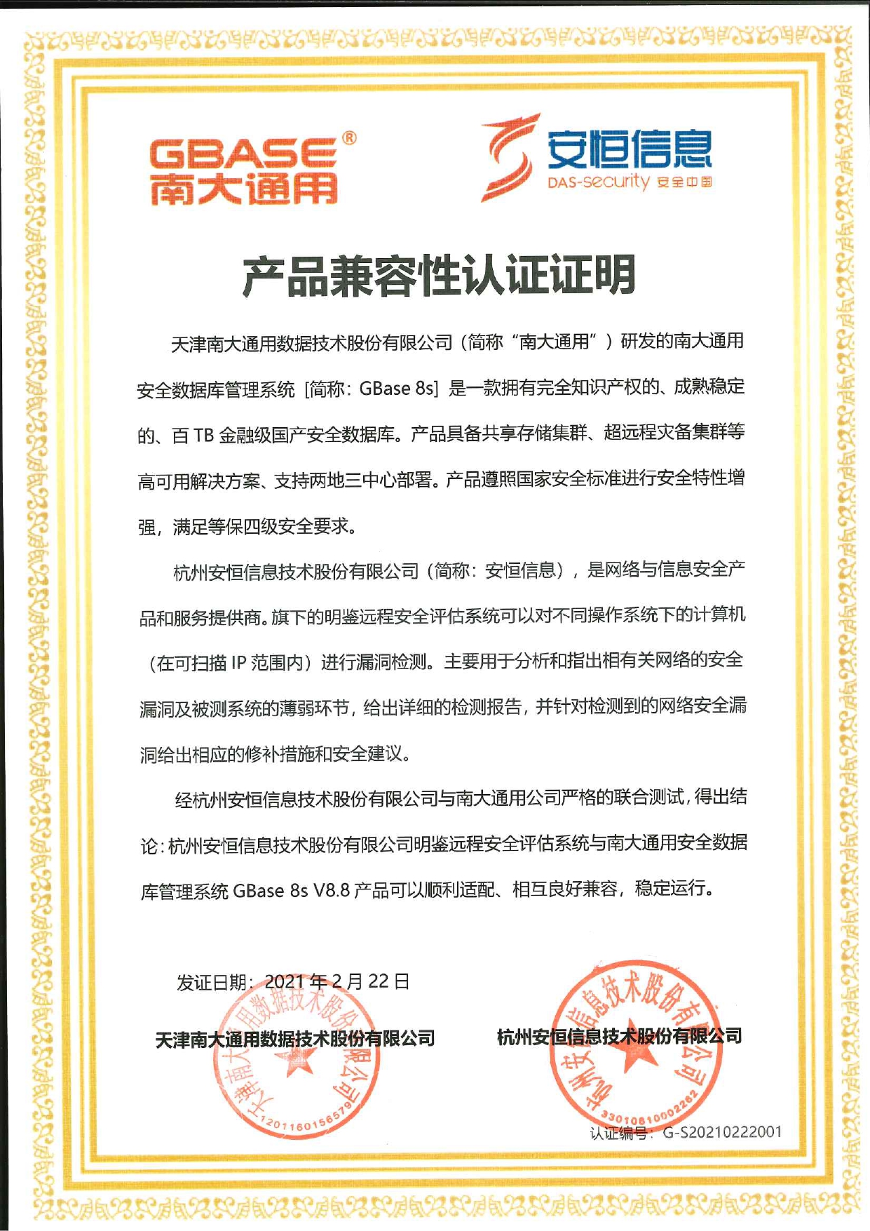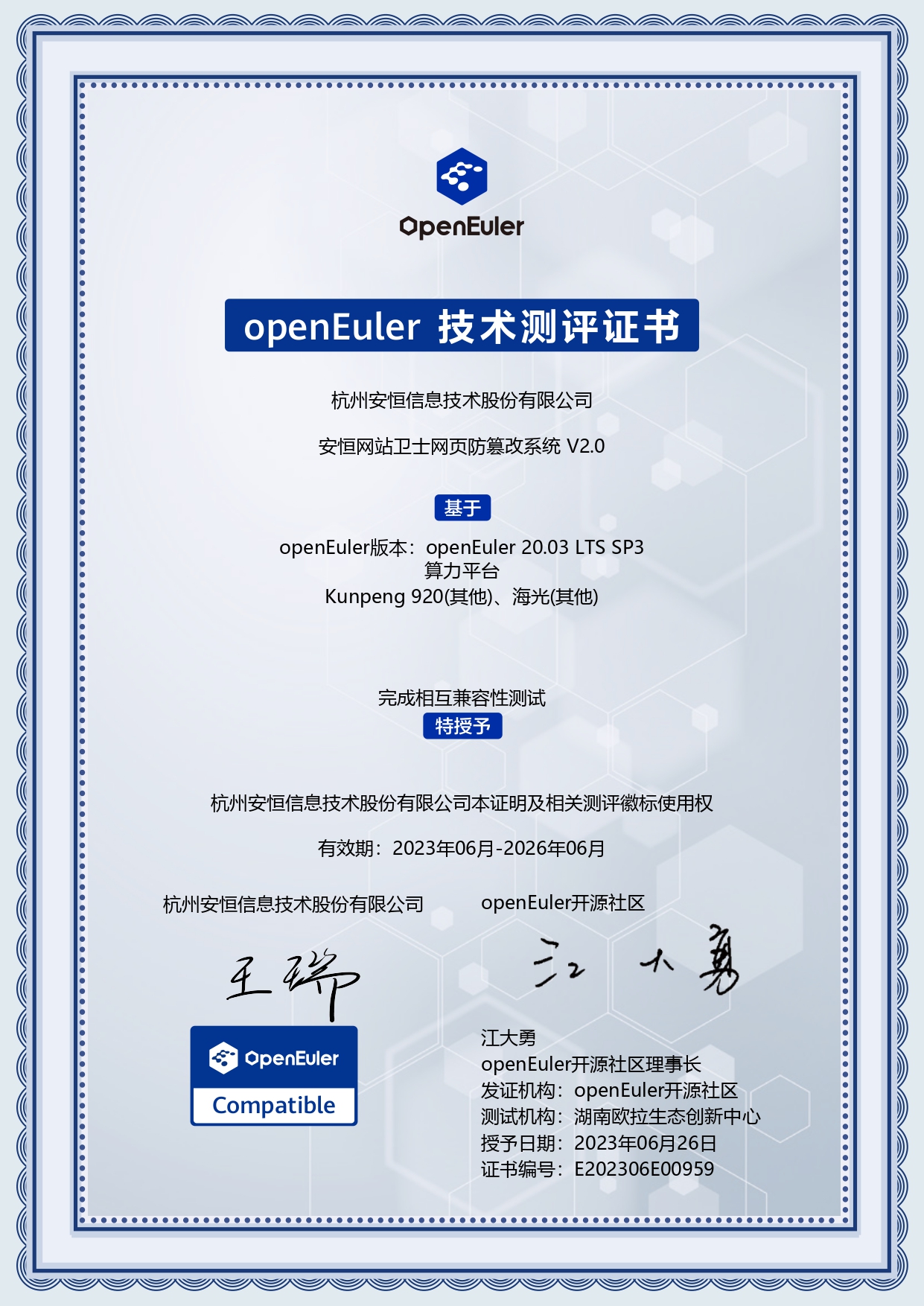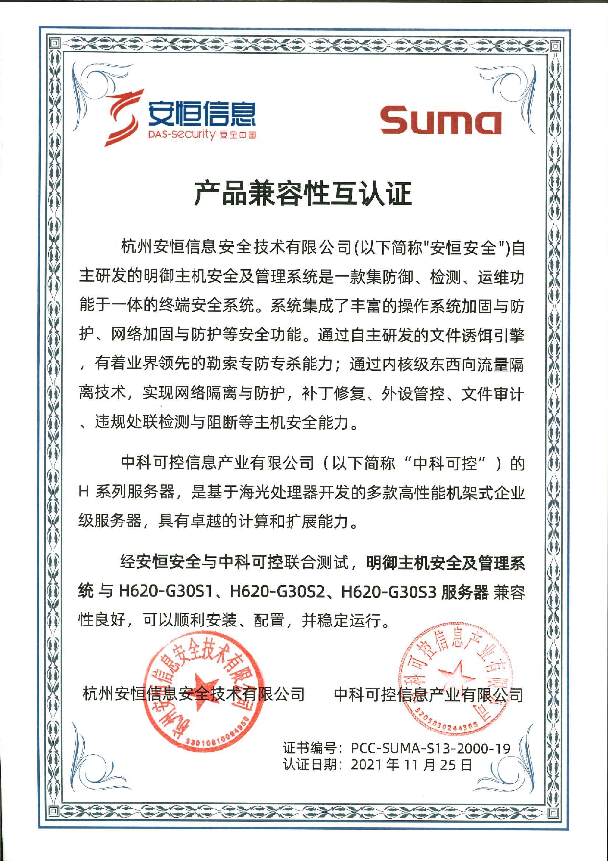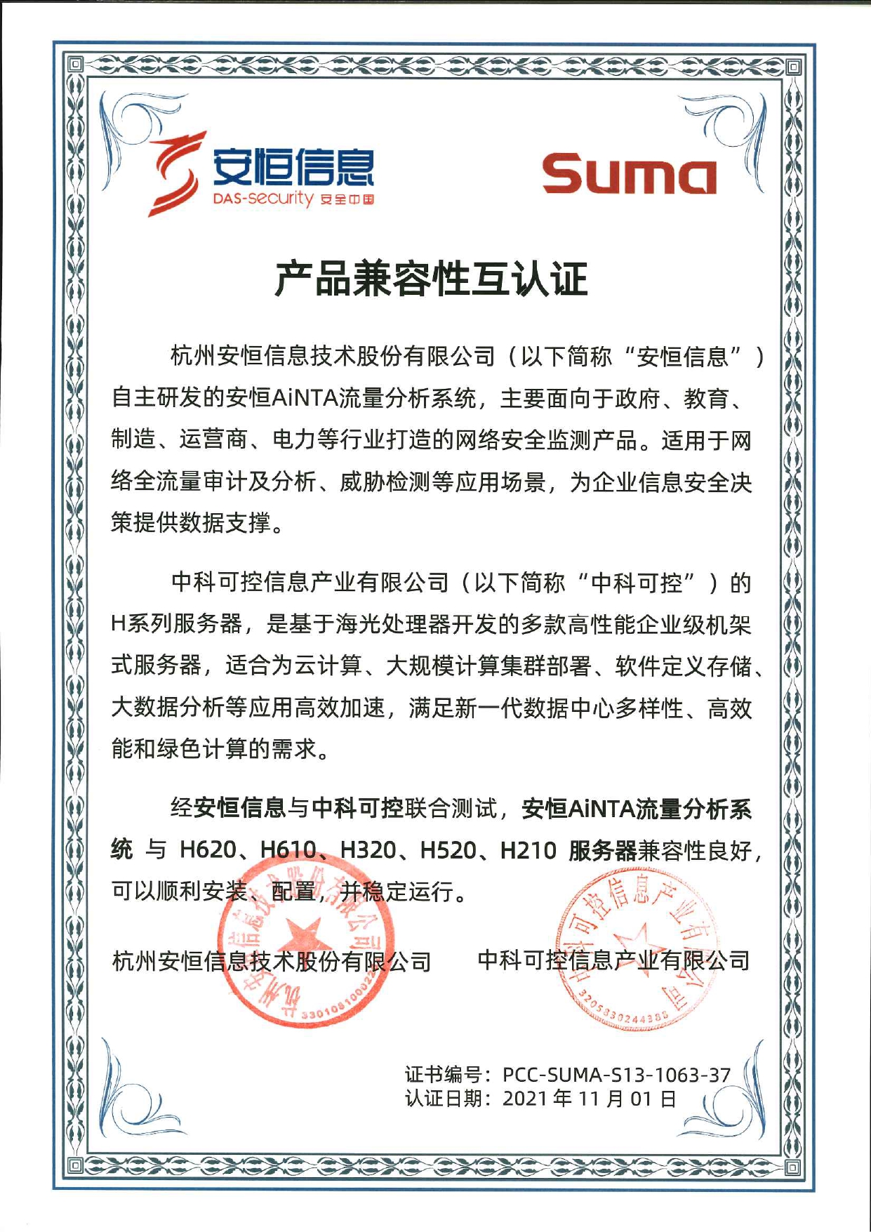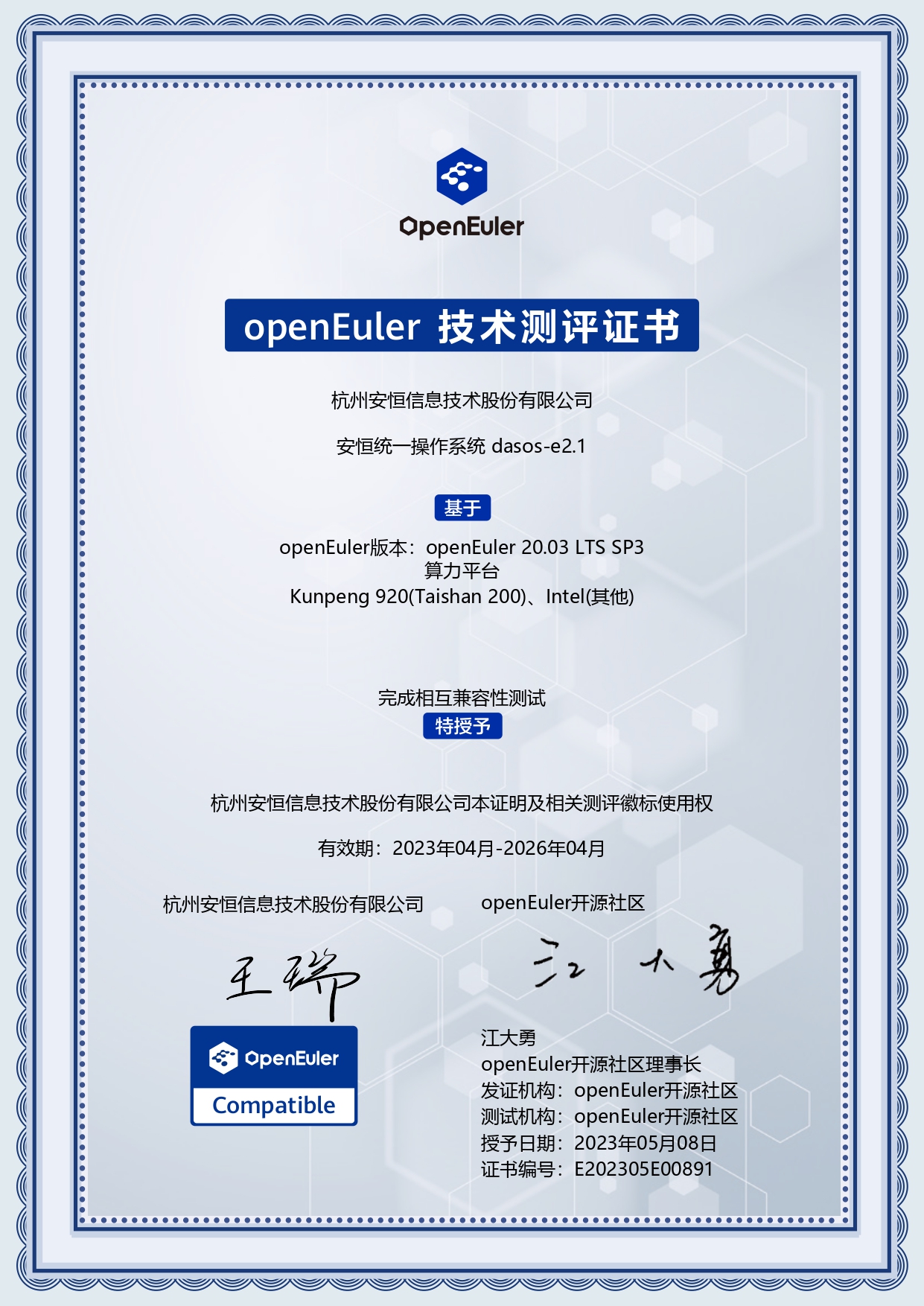 - 安恒信息AiLPHA大數(shù)據(jù)智能安全平臺(tái)、APT攻擊預(yù)警平臺(tái)分別與華為TaiShan 200系列完成兼容性測(cè)試。華為智能計(jì)算授予安恒信息HUAWEI COMPATIBLE證書(shū)及相關(guān)認(rèn)證徽標(biāo)使用權(quán)。
