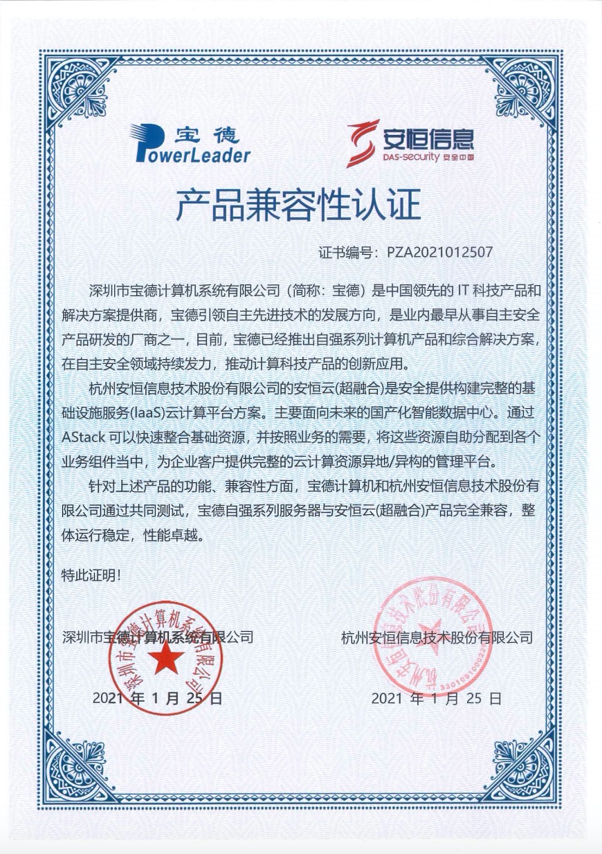 - 安恒信息天池云安全管理平臺(tái)成功與華為TaiShan 200系列服務(wù)器完成適配兼容性認(rèn)證