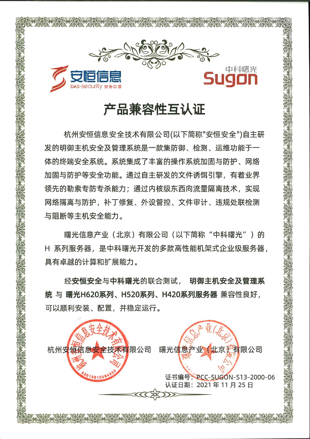 2022年2月28日,中科曙光與杭州安恒信息簽署戰(zhàn)略合作協(xié)議,將在各領(lǐng)域的技術(shù)創(chuàng)新、產(chǎn)品研發(fā)、解決方案、生態(tài)適配、市場(chǎng)推廣等多方面展開(kāi)深入合作,共同推進(jìn)云安全解決方案。