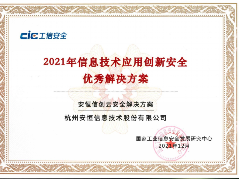 2022年3月,安恒信息獲得國(guó)家工業(yè)信息安全發(fā)展研究中心首批“信創(chuàng)政務(wù)產(chǎn)品安全漏洞專業(yè)庫(kù)技術(shù)支撐單位”證書(shū)。